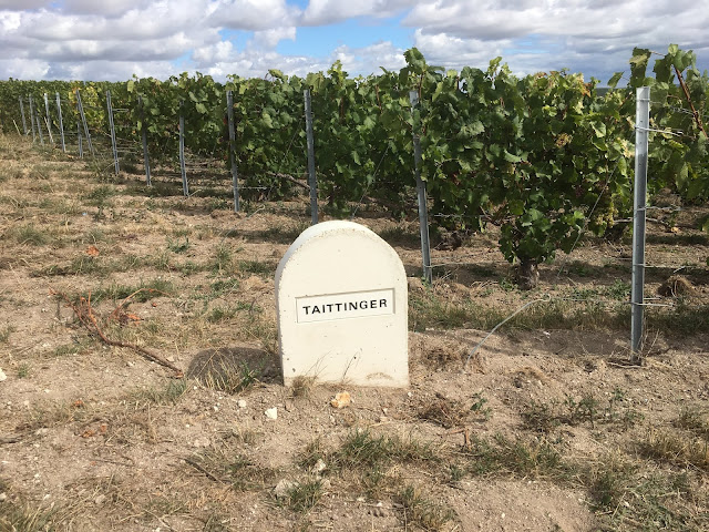 ...waar om de paar honderd meter een steen staat voor ieder perceel onder welke naam de Champagne zal gebotteld worden....eerst passeerde ik Mumm...en net ernaast de Taittinger....
